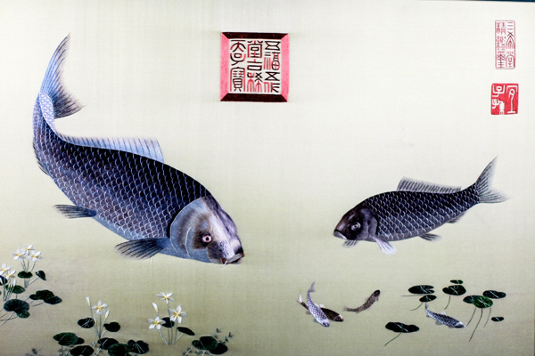 产品名称: 《双鱼》心4065框66100 精品刺绣作品 2-4丝绣制