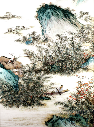 产品名称: 《山水》心47103框67145 精品刺绣作品 1-4丝绣制 徐祥云女士绣制